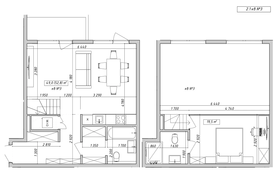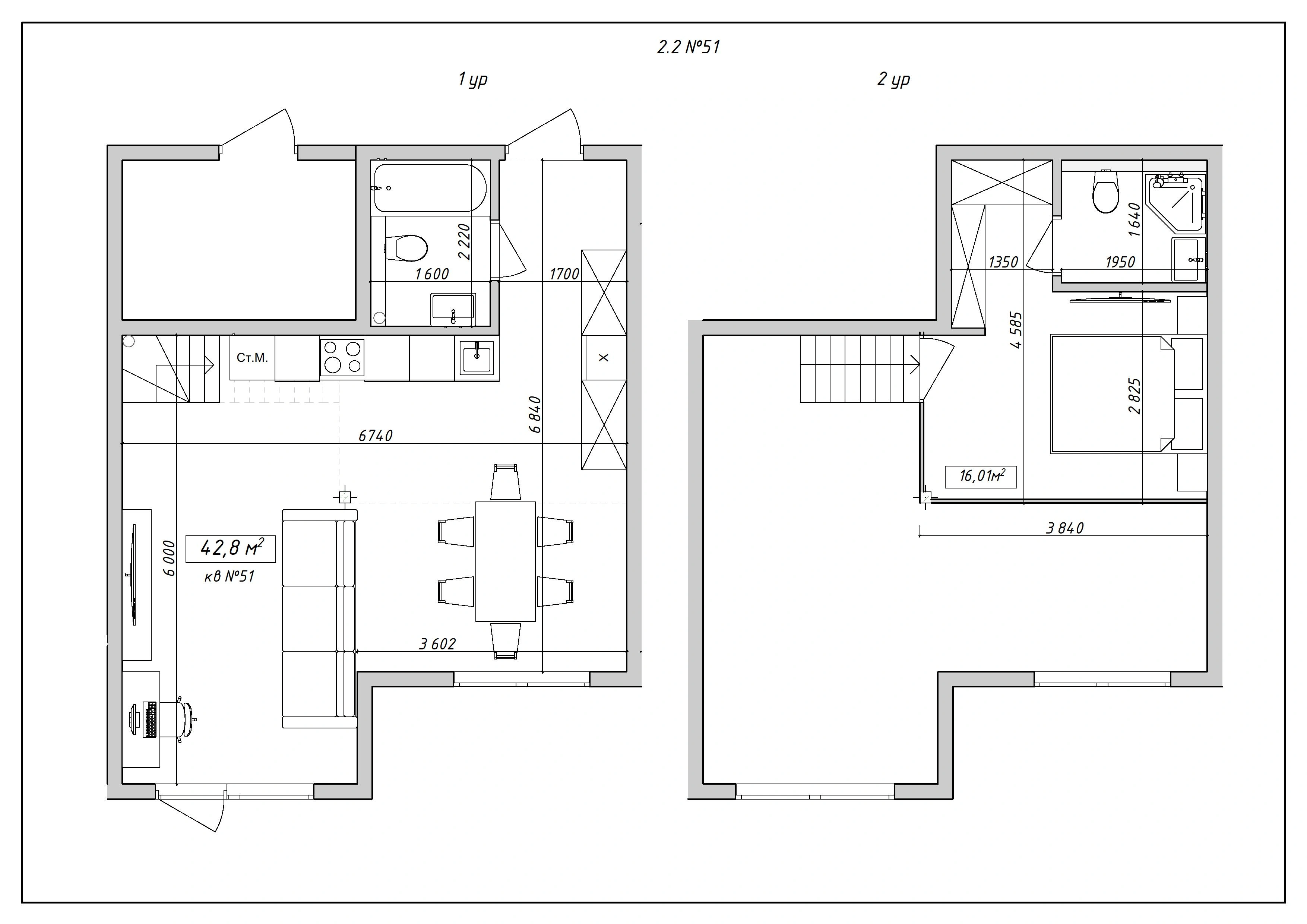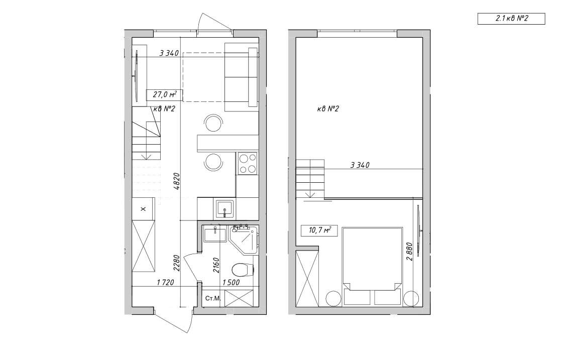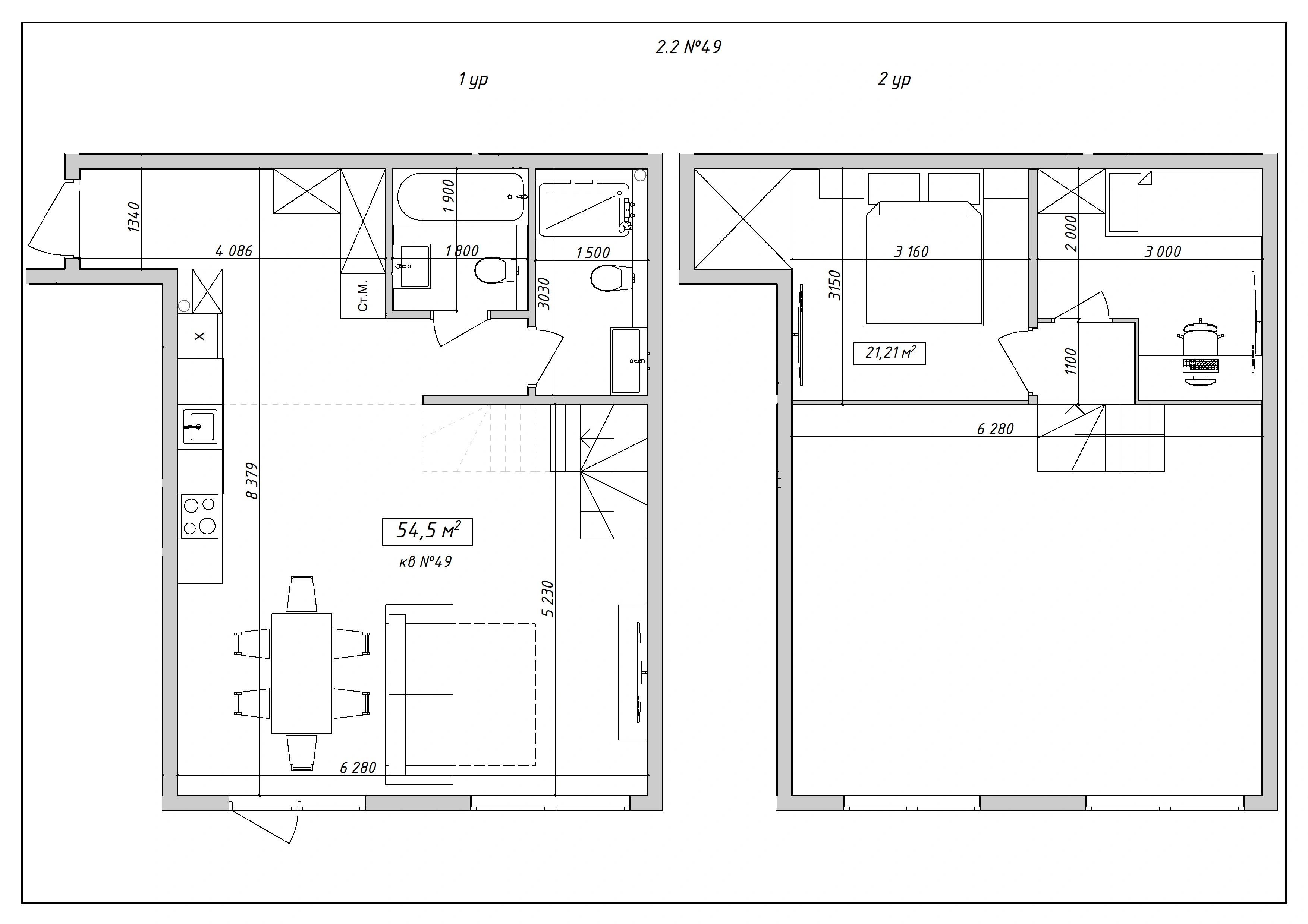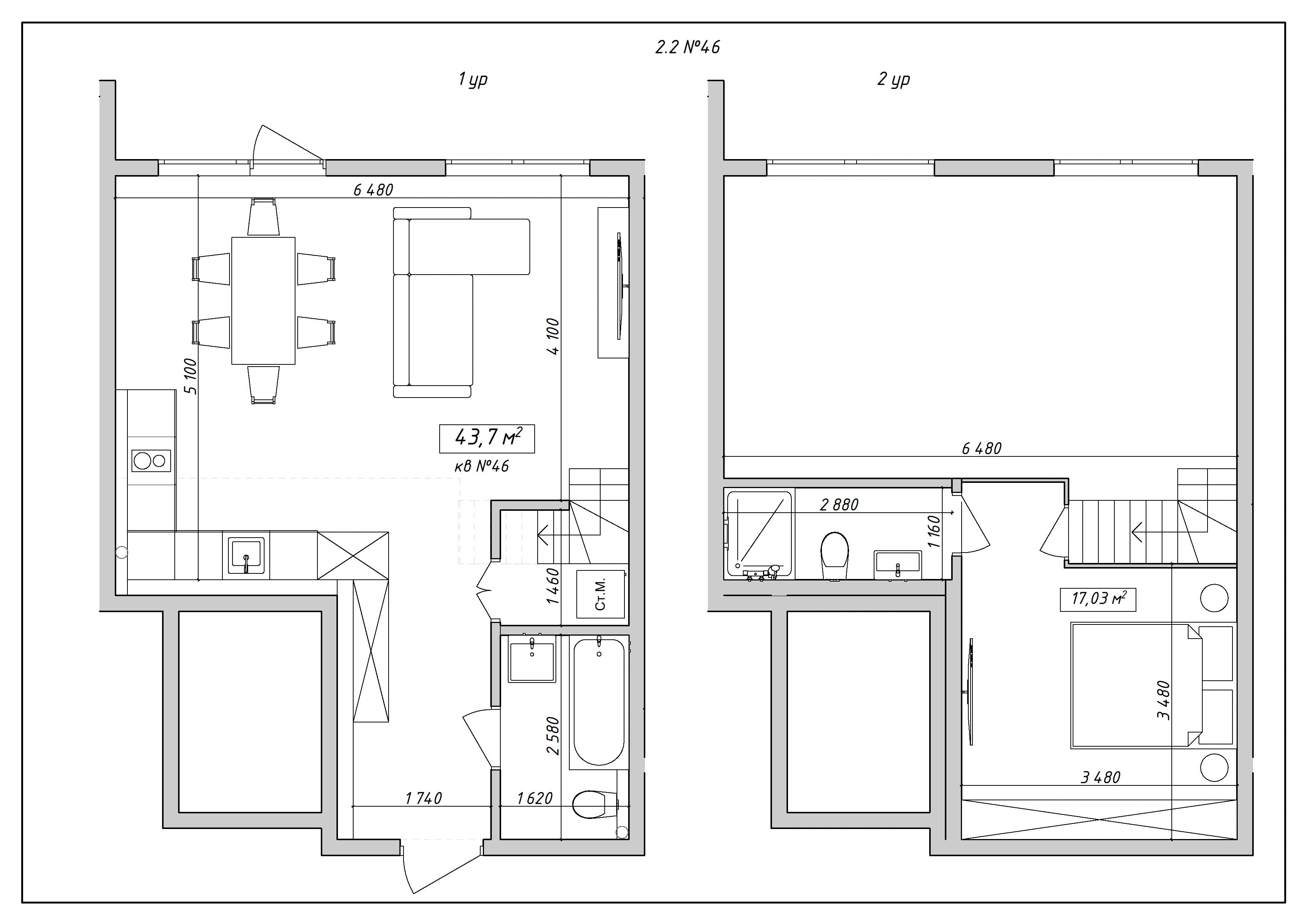 - Высота потолка первого уровня – 2.4 м, второго – 2.2 м.